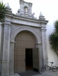 I actually have a dream of living in an area where I would not require a vehicle at all. All of my destinations could be reached by walking or riding my bike. I do not currently inhabit my dream town, but I do utilize this fantasy to my benefit when the time frame allows. Such as the other day. I had errands to run (the bank, the other bank, and the new to our town used furniture store). If time permits, I take the back roads and travel under the freeway where the atmosphere is serene and the route runs through a historical neighborhood. I then have to pass by the Mission. Yes, one of father Junipero Serra’s Spanish feats and the central beacon of our city. Several years back the Mission became a Basilica and adopted the “open door” policy (this is actually the new Mission church, not the adjacent historical-must pay to enter-attraction). With the new policy in place, the doors are unlocked and the grand, yet very peaceful, church provides sanctuary from the bustling of the outside world. Though I am not Catholic, I have spent many hours within the non-protestant walls. I have appreciated the simplicity of the hand paintings and the majesty of the arched, vaulted ceilings. More recently, for reasons I cannot fathom, a golden alter was installed. I suppose its gaudy position and magnitude against the simple wall paintings is a reflection of the truth from its past. Echos of the ruling empire dominating the natives with the two coexisting as one.